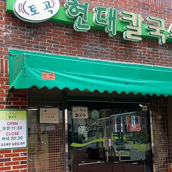 해당 식당은 현대칼국수라고 합니다. 토곡 현대칼국수라고 하기도 해요.