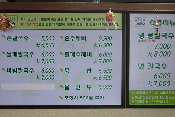 냉 콩칼국수 (대) 8,000원