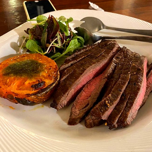 Sous-vide Beef Hanging Tender with Spinach and Mushroom