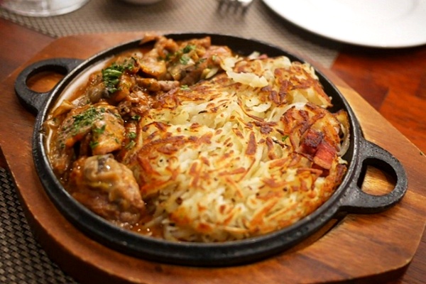 Rösti with Veal Emmince and Mushroom Sauce Zurich Style