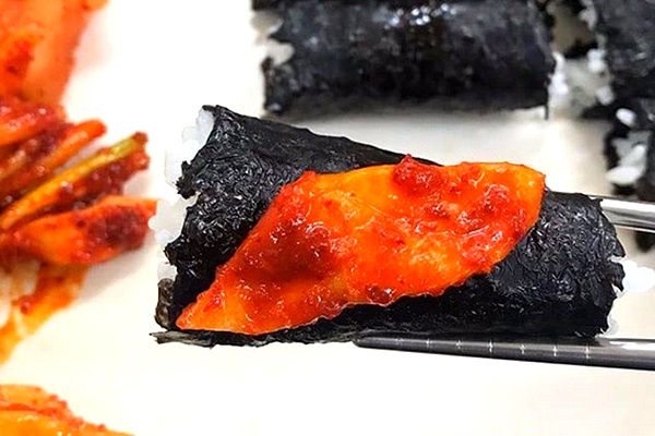 일반 김밥과 다른 점은 조리법뿐만 아니라 먹는 법에도 있는데 젓가락이 아닌 기다란 이쑤시개 같은 나무 꼬치로 꽂아서 먹는다.